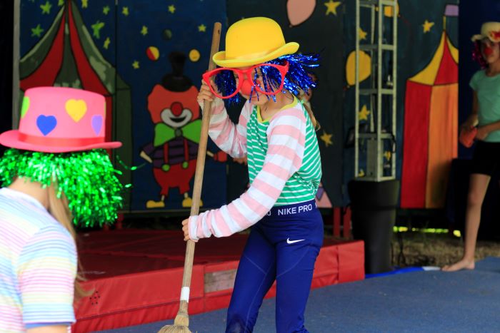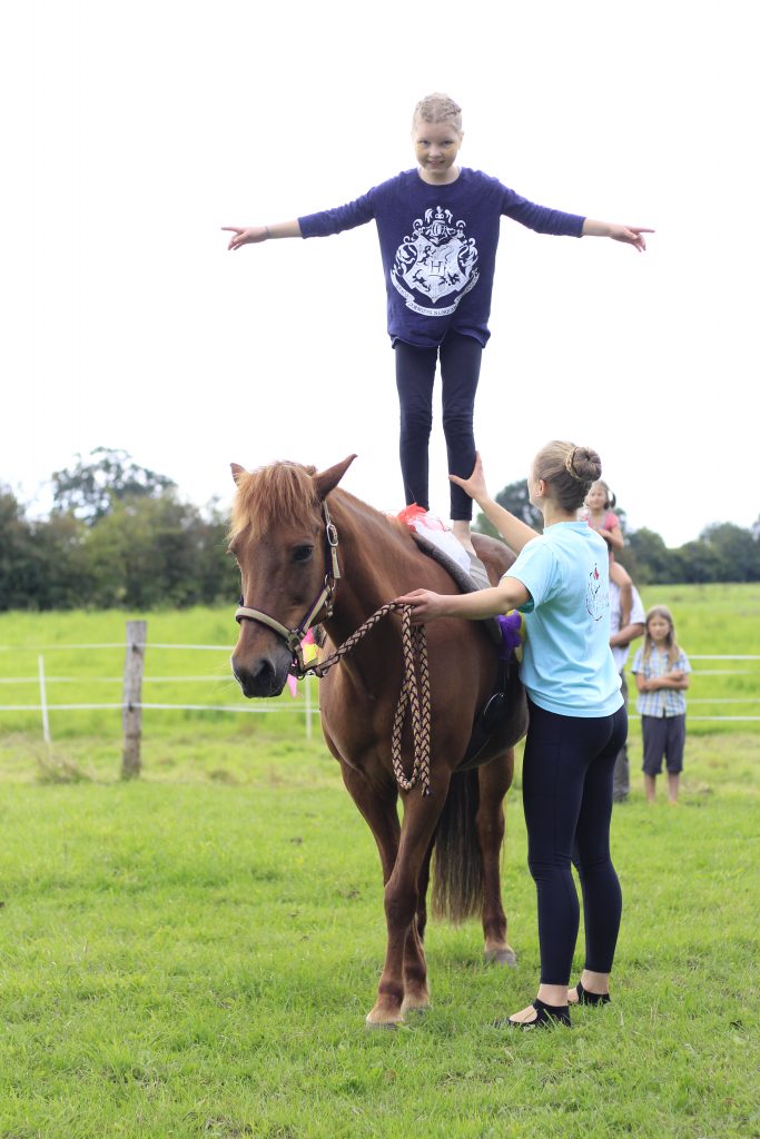 Während unserer Trainingszeiten könnt ihr eine ganze Bandbreite des Zirkus‘ ausprobieren und euch schließlich mit einigen Lieblingsdisziplinen auf die Aufführung vorbereiten. Neben Jonglage, Äquilibristik (Balance), Clownerie, Boden- und Luftakrobatik, sind in diesem Angebot auch unsere Pferde und Hunde aktiv mit eingebunden. Von der reinen Begegnung bis zu Kunststücken und der möglichen Teilhabe an der Aufführung, werden sie das Programm aktiv begleiten. Während der Intensivtage ist außerdem ein Team vor Ort, dass die kreative Gestaltung der Zirkuskulisse für die Aufführung vorbereitet und ermöglicht. So entsteht schließlich die Aufführung und wird mit Schminke und Kostüm vor der von der Gruppe individuell gestalteten Kulisse verwirklicht.